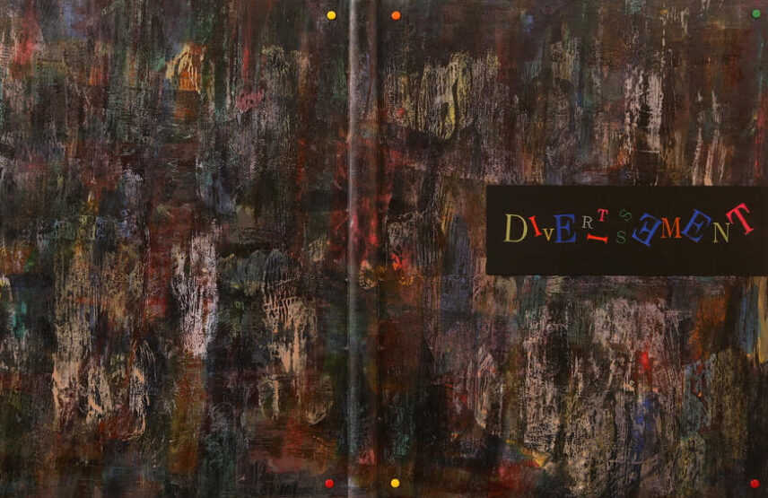 Titre-décor réalisé au pastel gras sur le plat recto : le titre devient décor à part entière.