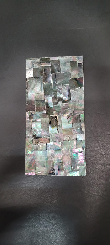 Nacre teintée avec découpes collées sur les plats.