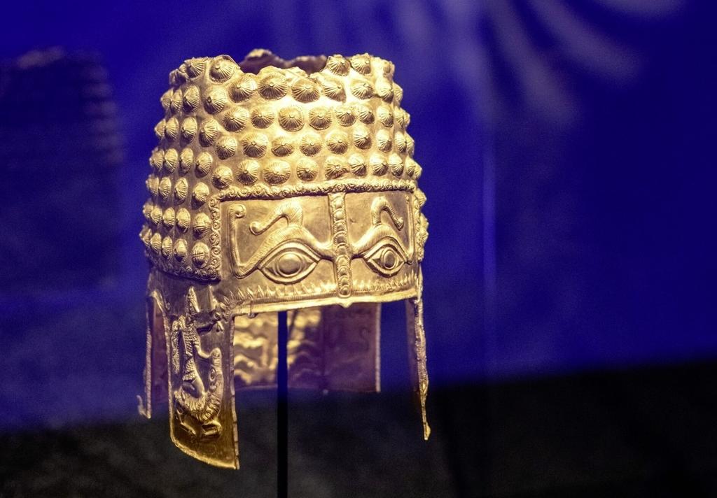 Le heaume de Coțofenești dans les vitrines de l'exposition « Dacia. Empire of Gold and Silver » au Drents Museum à Assen aux Pays-Bas. © DR