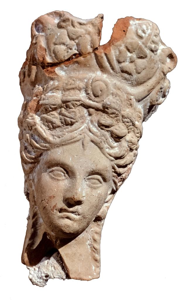 Tête de figurine en terre cuite du IVe siècle avant notre ère, découverte dans un dépotoir à Salamine. © Mission de Kition et Salamine