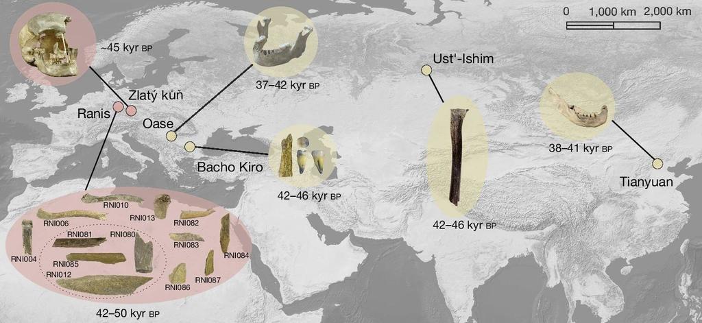 Exact ! L’un des spécimens de Ranis nous a fourni l’ADN sapiens le plus ancien connu à ce jour. Il est très complet et démontre une très grande proximité familiale avec la femme de Zlatý kůň. C’est incroyable que l’on arrive à identifier des parents à cette lointaine époque ! De l’Allemagne à la Moravie… Nous avons probablement affaire ici à de petits groupes disséminés sur un territoire immense.