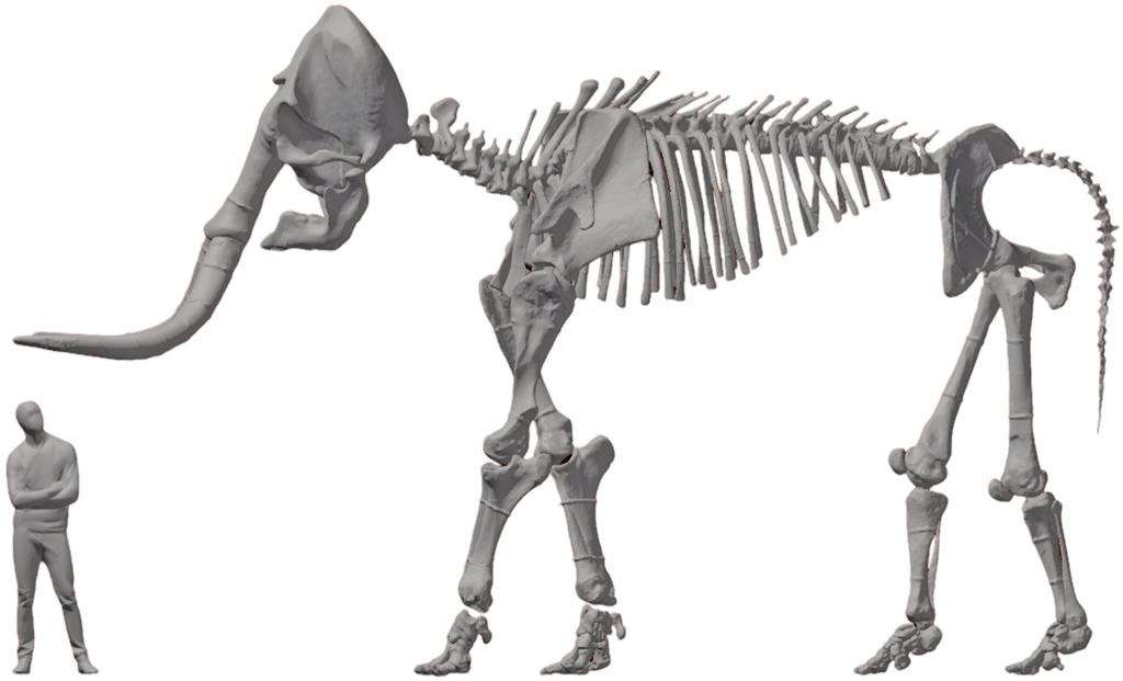 Modèle 3D du squelette monté du mammouth méridional de Durfort (en cours de restauration). © Florent Goussard, UMR 7207 CR2P MNHN-CNRS-SU