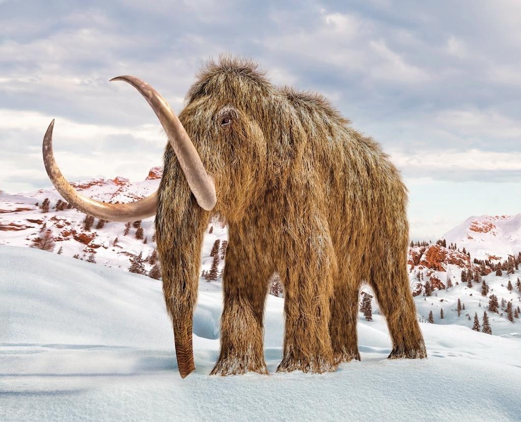 Évocation d'un mammouth laineux dans la neige. © akg-images / Leonello Calvett / Science Photo Library