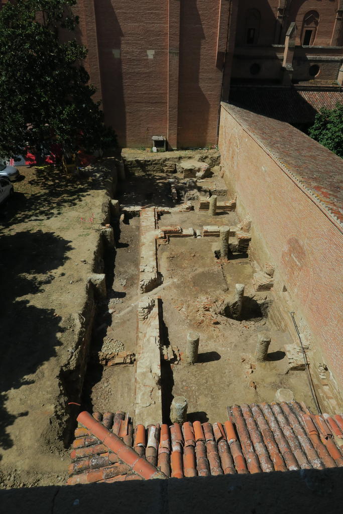 Au sud de la ville, les fouilles de la deuxième ligne du métro ont été l’occasion de s’intéresser à l’ancienne résidence des comtes de Toulouse, le château Narbonnais, implantée sur la porte romaine. Le fossé principal, présent dès la période carolingienne, est comblé avant le XIIIe siècle. Après la prise de possession du comté par le roi (1271), ce dernier lance de grands travaux pour transformer l’ancien château en centre administratif. Le palais est agrandi vers le sud, sur l’ancienne lice. Un nouveau rempart est édifié, s’étendant vers l’est, jusqu’à la porte Montgaillard (rue Ozenne) ; son tracé a été reconnu lors de diverses opérations archéologiques (château Narbonnais, rue des Fleurs, Hauts-Murats). Ce quartier, appelé la Sénéchaussée, s’achève à hauteur de la prison des Hauts-Murats. Édifiée sur l’ancien cimetière juif de Toulouse, à la fin du XIIIe siècle, cette geôle est ensuite rebâtie au début du XVIe siècle. À l’extérieur de la ville, les fouilles qui ont eu lieu sur le site du Muséum d’histoire naturelle ont permis de dégager un lotissement médiéval du XIVe siècle et d’appréhender un peu mieux le peuplement des abords de la ville. Organisé autour d’une rue centrale, l’habitat se développe en îlots. Les maisons sont principalement construites en terre et en bois. Au sud du château Narbonnais, au-delà du fossé, une vaste aire funéraire est en usage entre le VIIIe et le XIIe siècle. À la suite des travaux lancés à partir du XIIIe siècle, le cimetière se restructure et une église dédiée à Saint-Michel est érigée au XIVe siècle. À proximité, un autre cimetière, comportant des « sépultures de catastrophe » liées à la peste du XIVe siècle, a été fouillé, exhumant plus de 150 corps sur une petite parcelle.