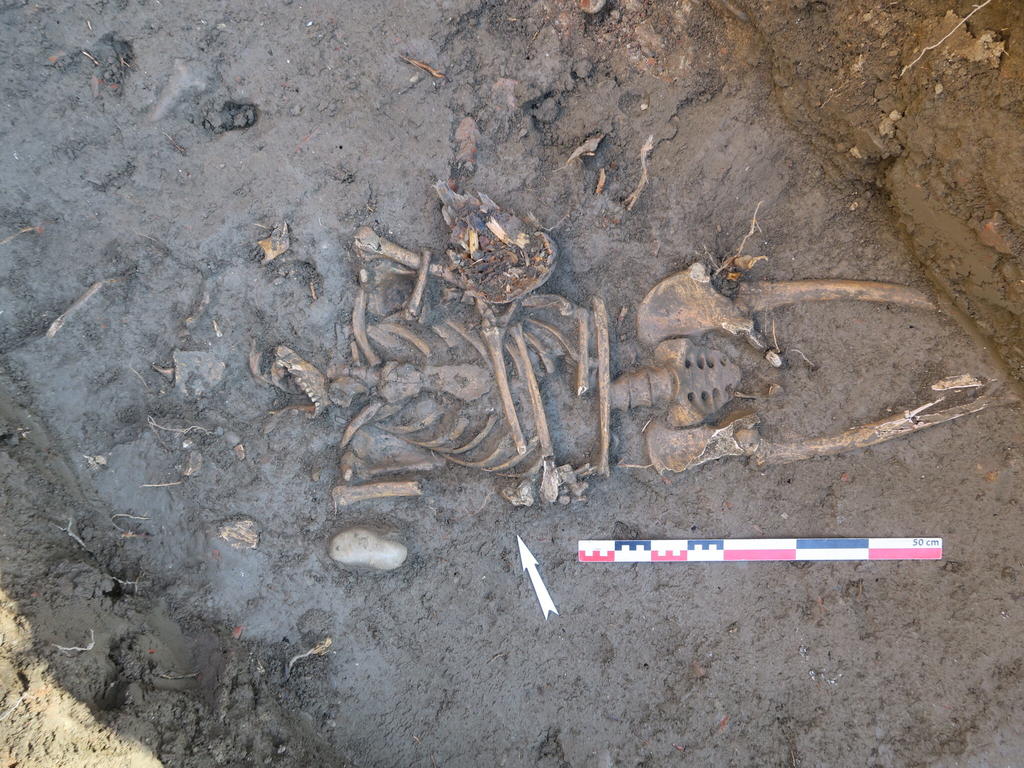 Sépulture d’époque moderne dans la cour de la Maternité de l’hôpital La Grave. © C. Calmés, CATM