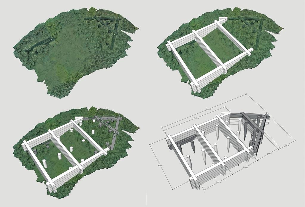 La fouille subaquatique de la pile 3 du pont romain de Pontoux, dans la rivière du Doubs, a permis de restituer le mode de construction des caissons de bois charpentés. Document Philippe Moyat