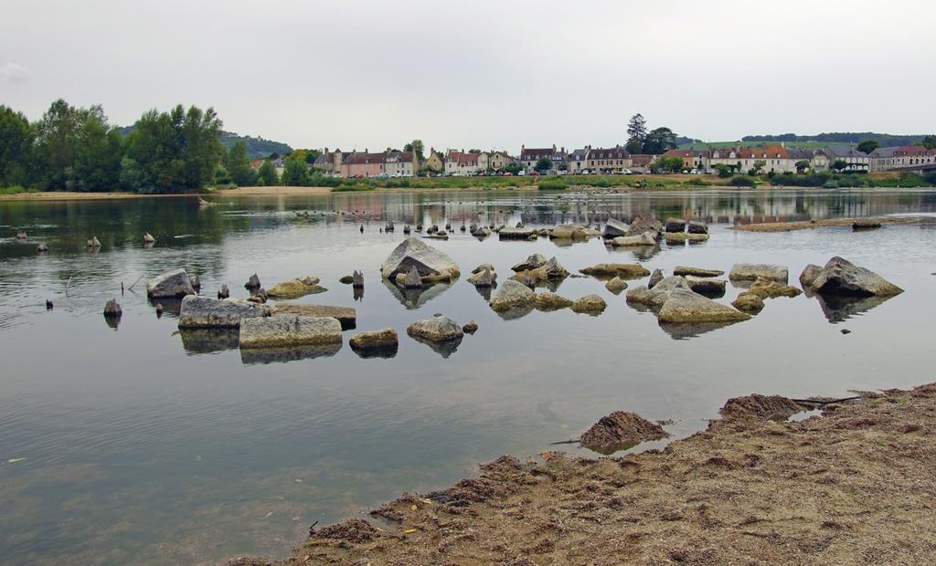 À La Charité-sur-Loire, en période de basses eaux, les promeneurs peuvent voir dans le chenal de la Loire ces pieux qui constituaient les fondations d’un pont en bois. Les chênes qui ont servi à sa construction ont été abattus en 1249. © Annie Dumont