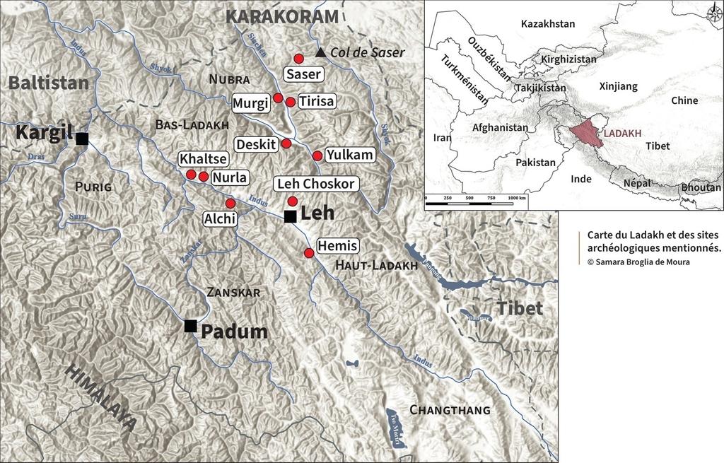 Carte du Ladakh et des sites archéologiques mentionnés. © Samara Broglia de Moura