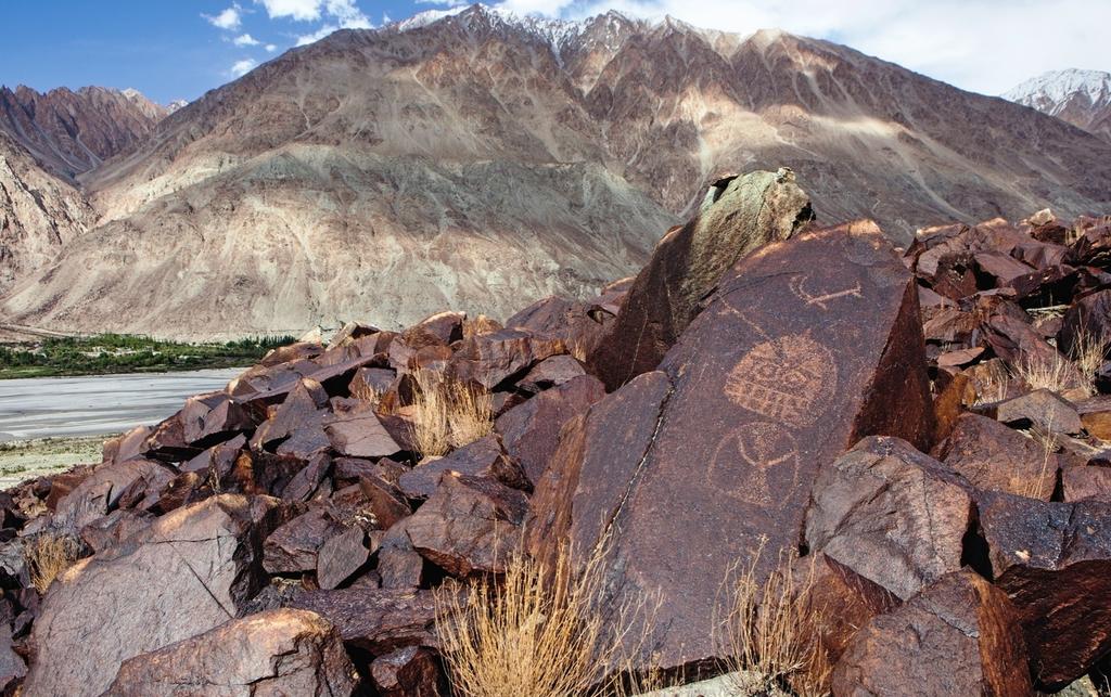 Dans la région du Changthang, le site d’art rupestre de Kawathang conserve plus d’une douzaine de roches gravées le long de l’Indus. © Ahtushi Deshpande, photojournaliste indépendante, www.ahtushi.com