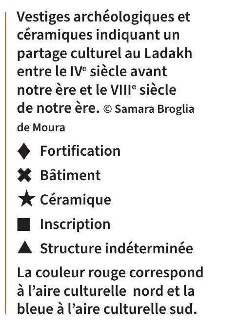 Au tournant des IVe-IIIe siècles avant notre ère, le Ladakh connaît une transformation importante de son organisation territoriale, qui perdure jusqu’aux environs du VIIIe siècle de notre ère. Elle est liée d’une part à l’essor des interactions avec les différents empires lettrés centrasiatiques et indiens (notamment hellénistique, kouchan, gupta, hephtalite). Ces derniers ont laissé des marques significatives dans les productions céramiques, les inscriptions rupestres en écritures indiennes ainsi que dans les plans des fortifications et bâtiments ; ces traits différencient les sites du nord du Ladakh (notamment à Deskit dans la vallée de la Nubra et la vallée de Dras) du reste du territoire. Les céramiques sont fabriquées à l’aide d’un support rotatif pour le façonnage et, en plus d’être réalisées avec une pâte fine, elles sont ornées de décors incisés et estampés, avec l’utilisation courante d’un engobe rouge, orange et noir (voir aussi encadré ci-contre).