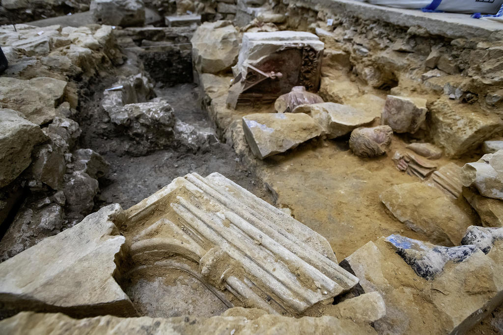 Éléments d’architecture et de statuaire du jubé en cours de fouille. © Denis Gliksman, Inrap