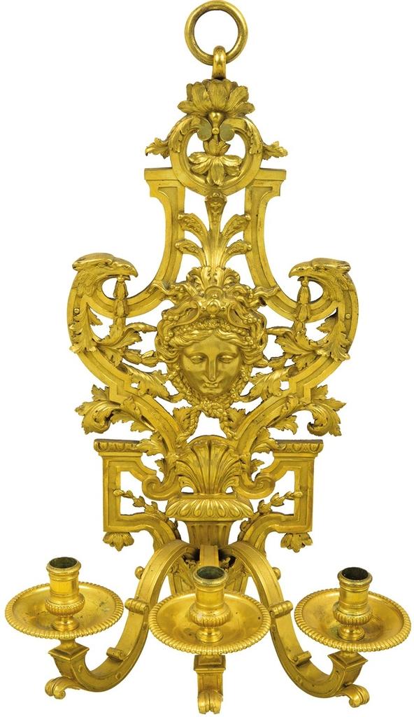 André-Charles Boulle, applique au masque d’Apollon (d'une paire), 1715. Bronze ciselé et doré. Paris, musée du Louvre. © musée du Louvre, Dist. RMN-Grand Palais / Philippe Fuzeau
