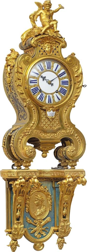 « Le cartel en bronze en deux parties, œuvre commune d’Oppenord et de Boulle, créé vers 1715-1720, pour Jacques III Thuret […] est tout à la fois la première pendule d’applique tout en bronze et une vision intéressante du glissement du classicisme vers le “style Régence”. »