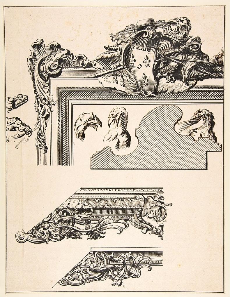 Gilles-Marie Oppenord (1672-1742), dessin pour un cadre pour Charles de Saint-Albin, vers 1730-1740. Crayon, encre brune, traces de craie noire, 38,1 x 29,4 cm. New York, The Metropolitan Museum of Art. © courtesy of the Metropolitan Museum of Art, New York
