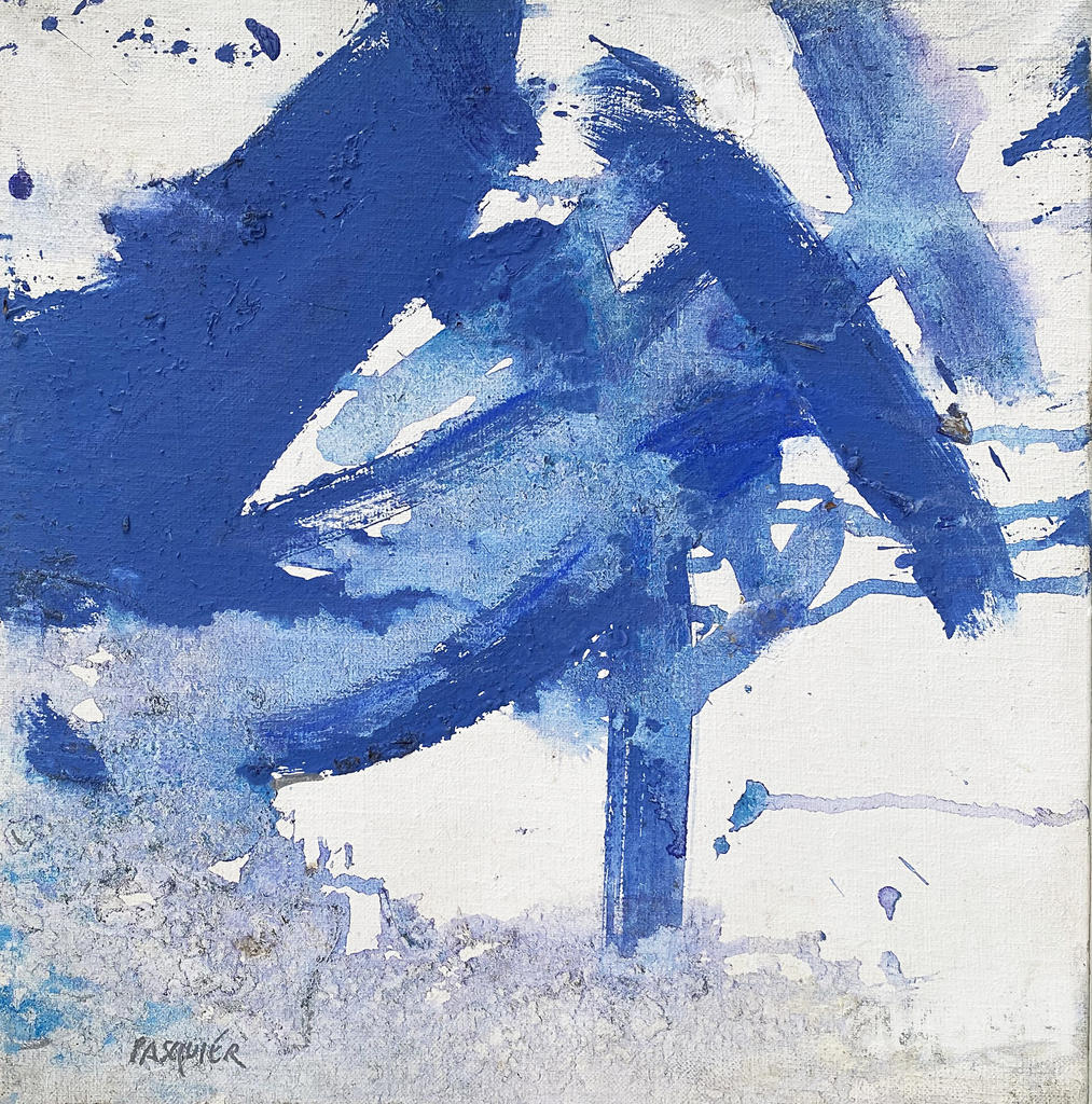 Noël Pasquier, Arbre bleu, 2020, technique mixte sur toile, 30 x 30 cm. © Courtesy Marie-Hélène et André Bertrand