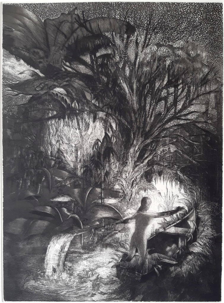 Cet aspect inépuisable serait cependant presque ordinaire pour un artiste de la mouvance visionnaire, si le traitement de la gravure elle-même n’était pas exceptionnel. Eau-forte rehaussée d’aquatinte, de pointe sèche, adoucie ou brutalisée par l’action du grattoir et du brunissoir, il y a aussi dans chacune de ces estampes, imprimées très proprement d’un beau noir, une leçon technique qui rendra jaloux les émules de l’artiste et plongera les amateurs dans l’admiration perplexe.