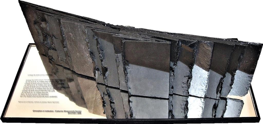 Lorsqu'ils sont venus…, texte de Martin Niemöller, 2008, livre-objet, exemplaire unique, bois, ardoise, tesselles d'ardoise sur miroir, 25 x 58 x 16 cm. © Marc Vernier