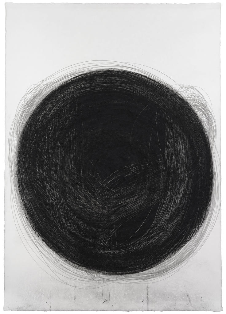Dans le nœud des gestes du dessinateur, il y a le souvenir des gestes du danseur qu’il fut jadis. L’artiste a fait l’expérience de tracer ces lignes à l’échelle de son corps, de s’impliquer physiquement avec sa feuille et d’embarquer le regardeur-spectateur dans ce geste rapide et violent, dans cette mécanique répétitive et épuisante, dans ce vertige. Face à la feuille à taille humaine, il faut accueillir l’énergie de ce que l’artiste considère comme son plus grand livre et prendre la mesure de notre engagement : ne pas voir pour mieux voir, se laisser infuser de lumière obscure, pénétrer un univers fait d’histoires intimes et de partages sensibles.