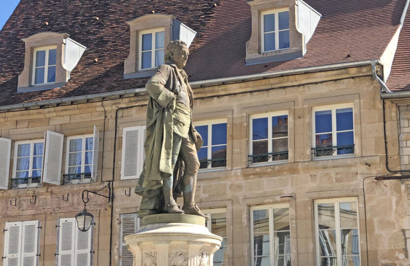 Statue de Denis Diderot commandée par la Ville de Langres à Auguste Bartholdi en 1884, à l’occasion du centenaire de la mort du philosophe. Elle est érigée au centre de la place Diderot à Langres. © Victoire Ladreit de Lacharrière