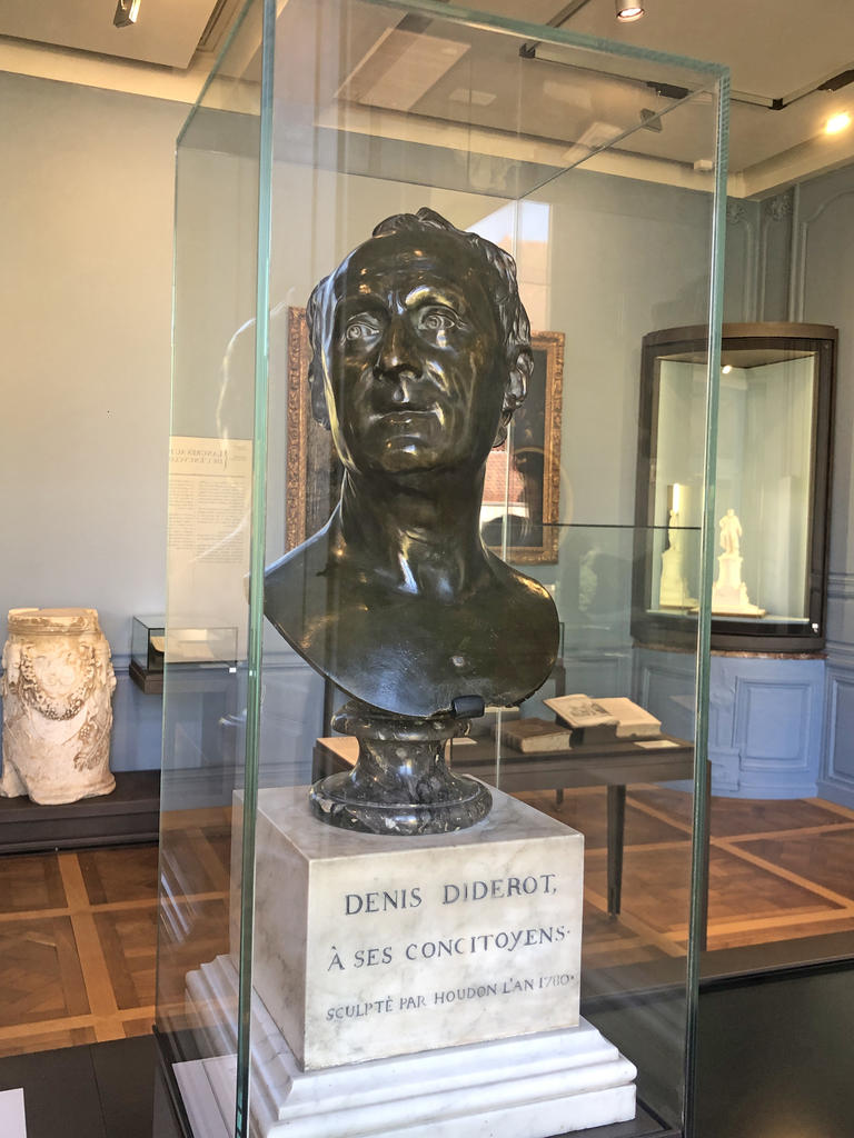 Dans la première salle du musée, buste en bronze de Denis Diderot réalisé par Jean-Antoine Houdon en 1780. © Musées de Langres