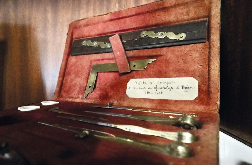 Le coffret en bois contenant les compas du zoologiste et anthropologue Armand de Quatrefages (1810-1892). © Alain Richard