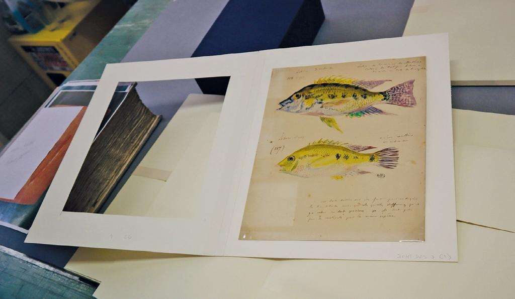 Montage de dessins d’ichtyologie sur passe-partout. © Alain Richard