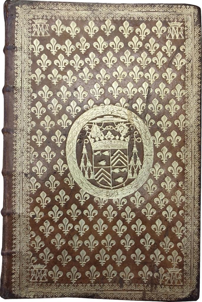 Cela peut sembler surprenant mais le fer héraldique (OHR 2315) utilisé pour cette reliure est attesté sur d’autres livres de prix conservés en collection publique (par exemple à la BnF) ou passés en vente aux enchères – livres offerts essentiellement aux élèves du collège du Plessis ou de celui de Marmoutier, qui lui est étroitement lié. Alors que le cardinal de Richelieu avait fait rebâtir le collège de Sorbonne et en avait choisi la chapelle pour y établir son tombeau, son petit-neveu contribuait donc encore en 1660 à doter des collèges liés à cet établissement de livres précieux remis aux meilleurs élèves. Dès 1665, cependant, comme l’indique une mention manuscrite sur la page de titre, notre exemplaire était passé à la maison de Saint-Charles, où les Pères de la doctrine chrétienne ouvraient au public l’une des plus belles bibliothèques de Paris.