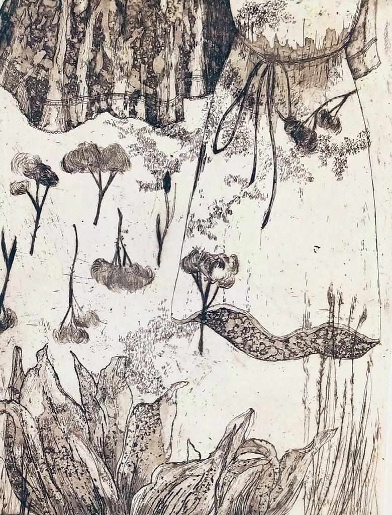 Arrimée, 2018, eau-forte, 25 x 20 cm. © Estelle Lacombe