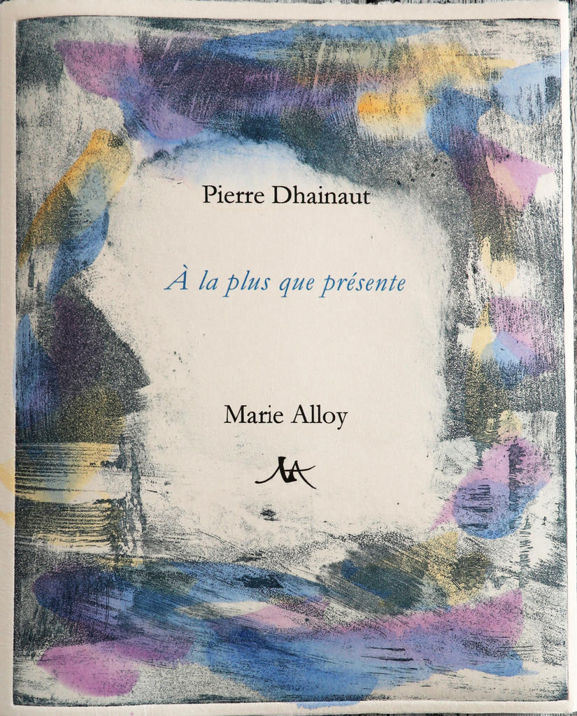 En 2024, elle a sorti des presses du Silence qui roule trois nouveaux livres d’artiste dont À la plus que présente où ses eaux-fortes et aquatintes sur japon aquarellé enchâssent les poèmes de Pierre Dhainaut, qu’il considère, de son propre aveu, comme des poèmes testamentaires : « Sans but, sans orient, ce bruit,/ que vaudrait-il mieux dire ? Cela ressemble/ au fracas d’un torrent, chaos de roches, écume, /souvenir de l’écume, du plus grave au vif,/ du plus vif au grave, par menues variations,/ par interruptions brusques, dans le sens/ de la ruine ou du rebond. » Cette Plus que présente, dit Marie Alloy en soulignant combien cet extrait rejoint ses préoccupations artistiques, est pour Pierre Dhainaut « la musique du poème ». Précisons que chaque édition du même livre d’artiste est différente, la graveuse et éditrice faisant en sorte d’y apporter d’infimes variations.