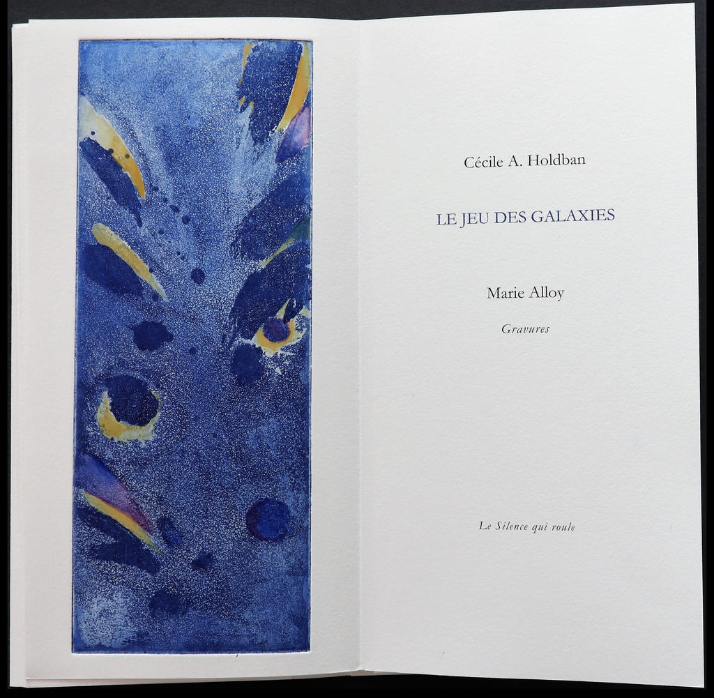 Le Jeu des galaxies, poèmes inédits de Cécile A. Holdban, aquatintes de Marie Alloy, Le Silence qui roule, 2023. Page de titre. © Marie Alloy