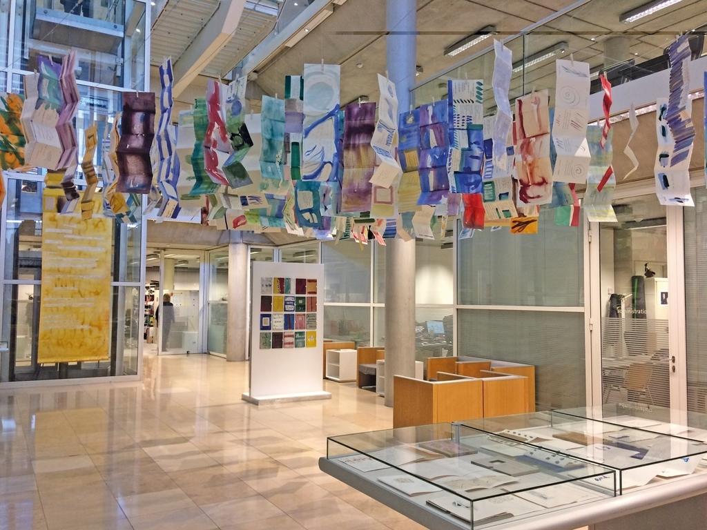 Installation de la collection des 130 livres manuscrits peints à l’occasion de leur acquisition par la bibliothèque Carré d’art à Nîmes, 2019. © DR