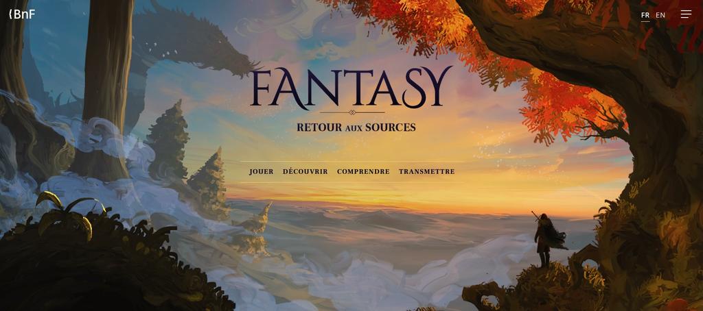 Le site Fantasy a été proposé par la BnF début 2020 pour mettre en valeur ce genre littéraire récent, qui fait lui-même appel à de multiples références culturelles. Le curieux peut les explorer au travers de cette manifestation numérique créée dans le prolongement de l’exposition physique « Tolkien, voyage en Terre du Milieu ». Le site se décompose en quatre parties : un jeu vidéo, une exposition virtuelle proprement dite, un ensemble de dossiers thématiques et une section de parcours pédagogiques, le tout unifié par un beau design et de nombreuses illustrations.