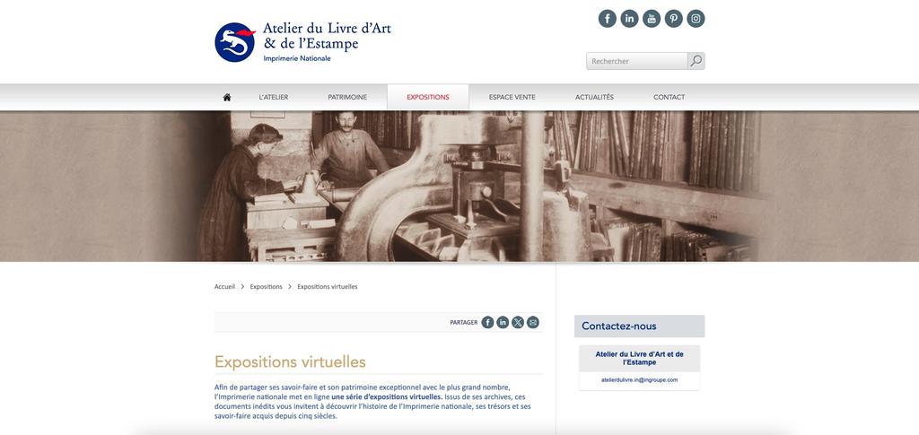 La BnF n’est pas le seul organisme d’État à proposer des expositions virtuelles autour du livre. Ainsi l’Imprimerie nationale présente-t-elle sur son site une exposition consacrée à ses caractères spécifiques. Du Garamond de François Ier au Gauthier des années 1970, en passant par le Grandjean de Louis XIV, chaque caractère est présenté au moyen d’un petit paragraphe explicatif et d’une photographie de boîte de poinçons.