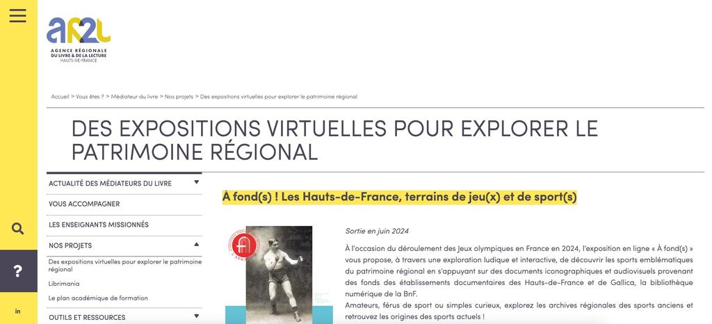 À l’échelle régionale, les initiatives existent également, à l’image de l’agence régionale du Livre et de la Lecture des Hauts-de-France. Celle-ci propose chaque année une nouvelle exposition virtuelle, assortie de ses outils de médiation. La dernière en date, « À fond(s) ! », élaborée à l’occasion des Jeux olympiques, aborde la thématique du sport. Concernant le livre, on retiendra « sublimes animaux », traitant la représentation des bêtes au Moyen Âge : animaux du quotidien, exotiques, imaginés, symboliques…