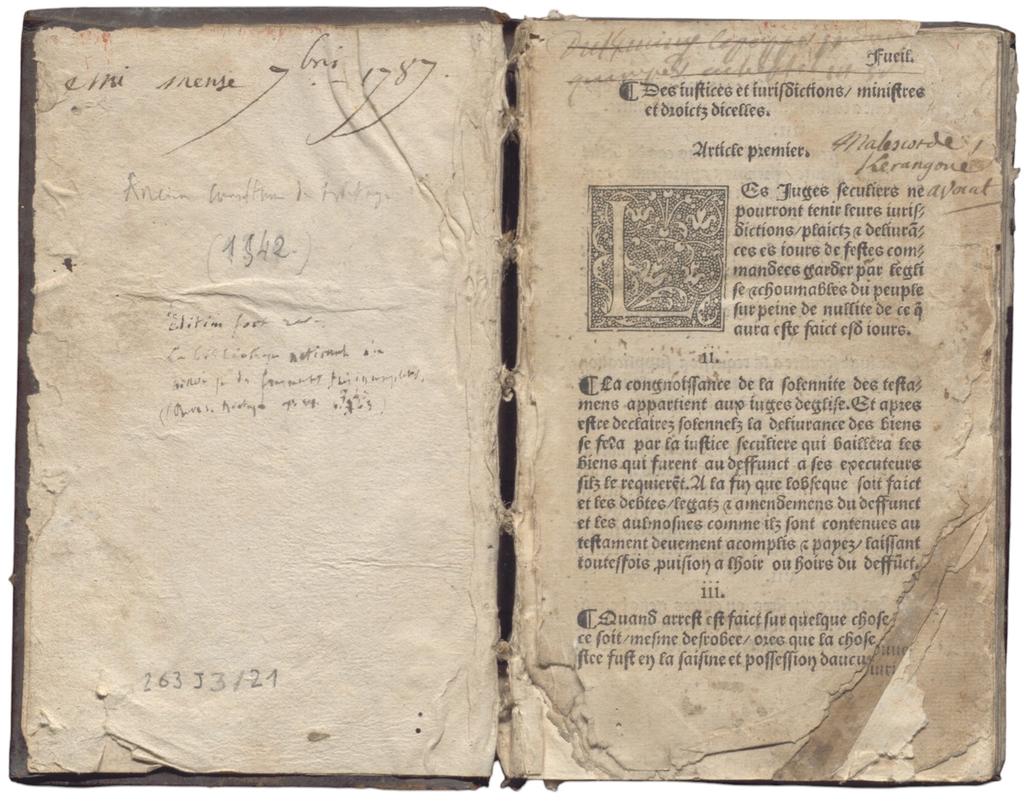 Ici, le titre est sur le plat recto, encadrant une partie du décor (monotype sur cuir).