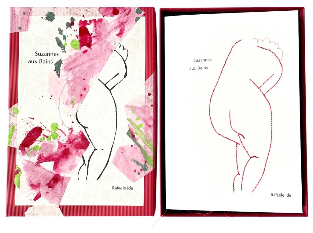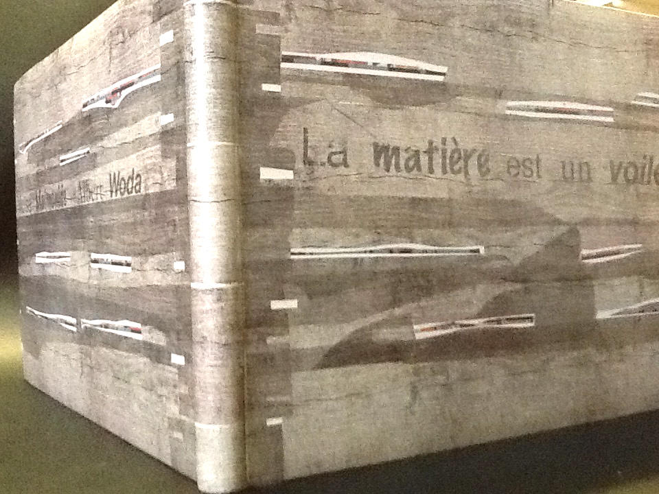 Ce titre a été fait sur la peau de couvrure avec des Letraset, puis le décor – un voile de papier de soie – est venu le recouvrir.