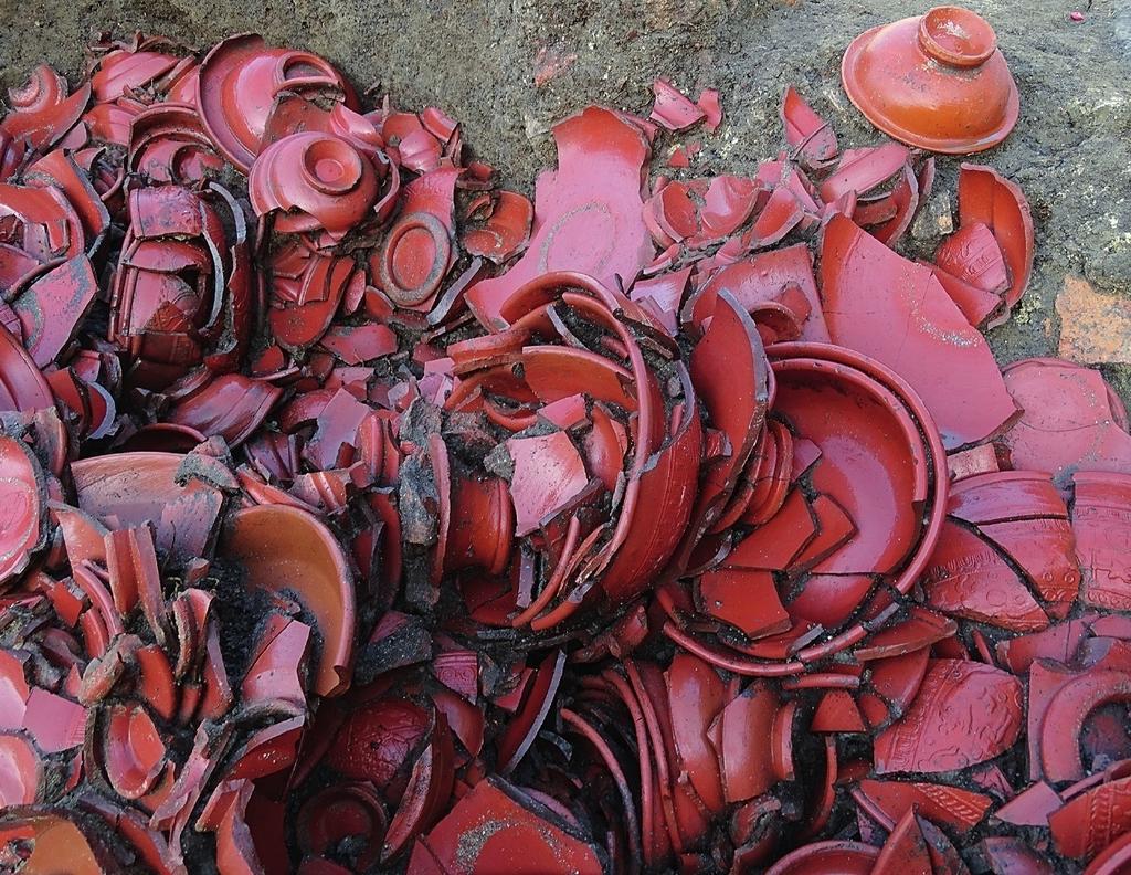 Dépotoir de céramique sigillée à Lezoux dans le Puy-de-Dôme, 2021. Ce cliché illustre l’axe 9 : Les économies de production des âges des métaux à la période contemporaine. © Cyril Driard, Éveha, 2021