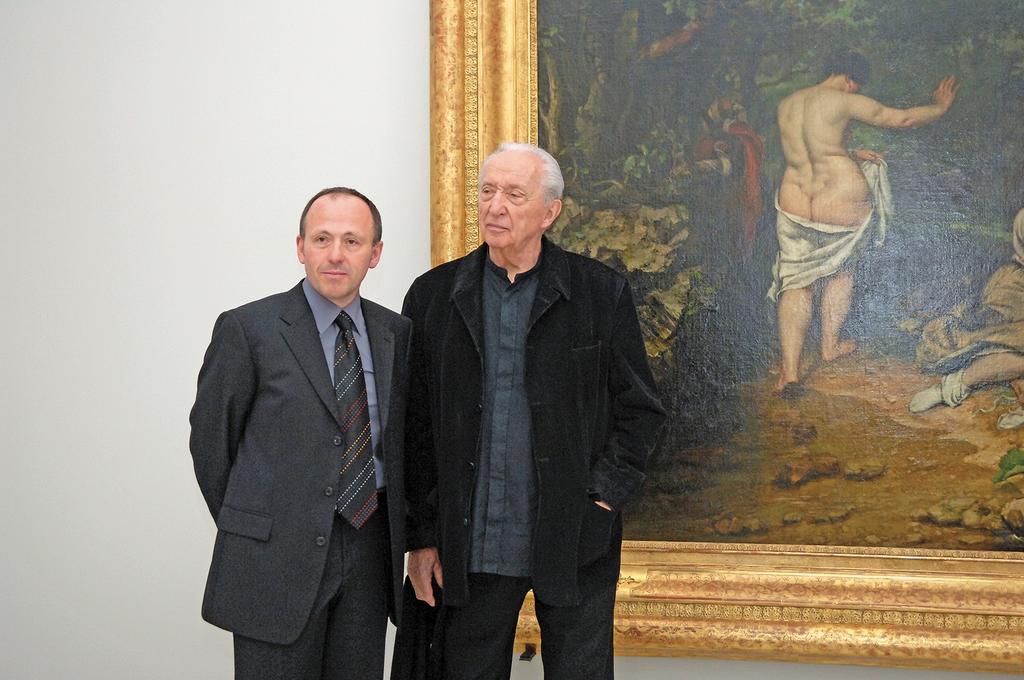 Michel Hilaire et Pierre Soulages devant Les Baigneuses de Gustave Courbet. © Montpellier Méditerranée Métropole / Cécile Marson