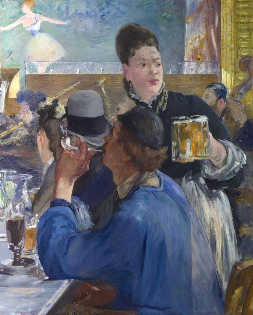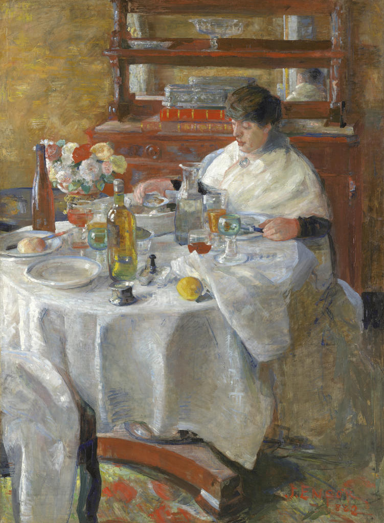 On admire ainsi dès la première salle la célèbre Mangeuse d’huîtres, brossée en 1882 (KMSKA) et considérée comme la première peinture impressionniste en Belgique. Accrochée en regard d’œuvres de Manet, à l’image de cet admirable Coin d’un café-concert, l’œuvre d’Ensor est refusée au Salon d’Anvers. (Trop) lumineux et (trop) grand, ce portrait d’une femme dégustant seule des huîtres (!) déroge aux règles les plus élémentaires de la perspective et ne peut que choquer ses contemporains ! Cet échec apparent ne fait pourtant que conforter « ce révolutionnaire qui désirait être incompris et admiré », comme le décrit fort justement Sabine Taevernier dans un essai du catalogue d’exposition.