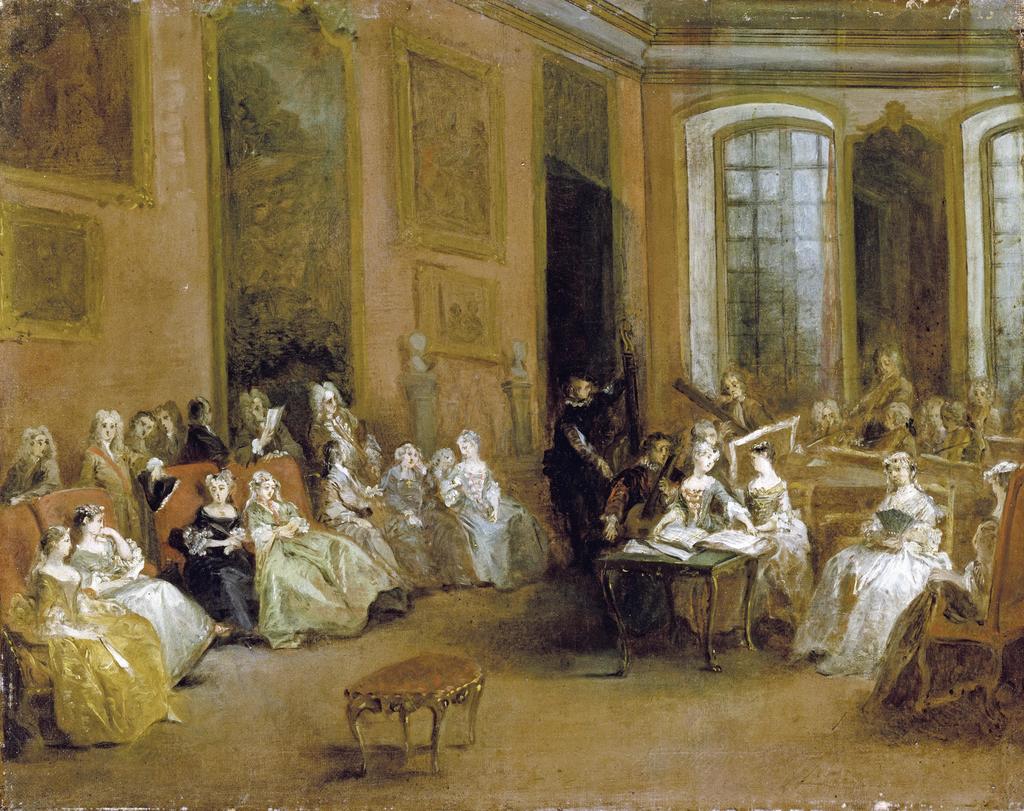 Nicolas Lancret, Le Concert chez Crozat, vers 1738. Huile sur toile, 36,8 x 45,6 cm. Munich, Bayerische Staatsgemäldesammlungen, Alte Pinakothek. © BPK, Berlin, dist. RMN / image BStGS