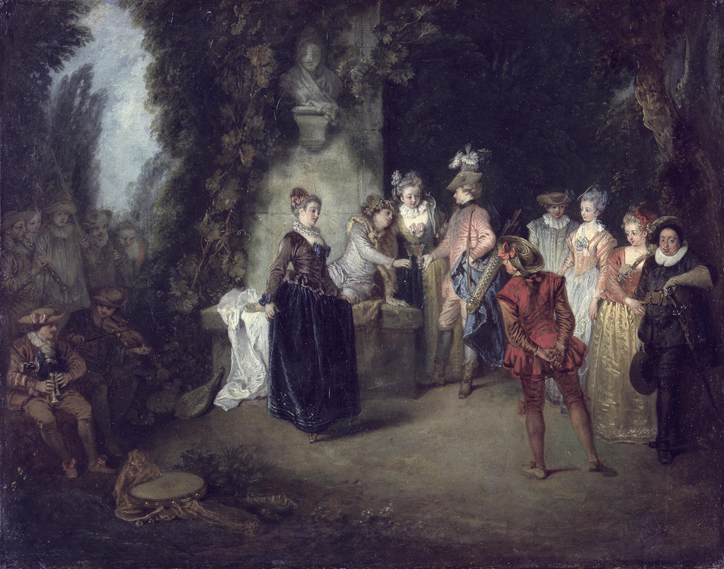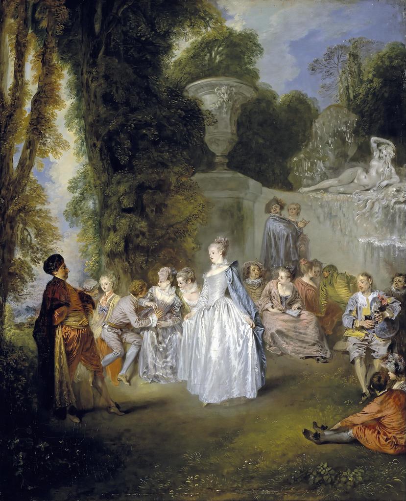 Antoine Watteau, Fêtes vénitiennes (détail), vers 1717. Huile sur toile, 56,3 x 46,2 cm. Édimbourg, National Galleries of Scotland. © National Galleries of Scotland / Bridgeman Images
