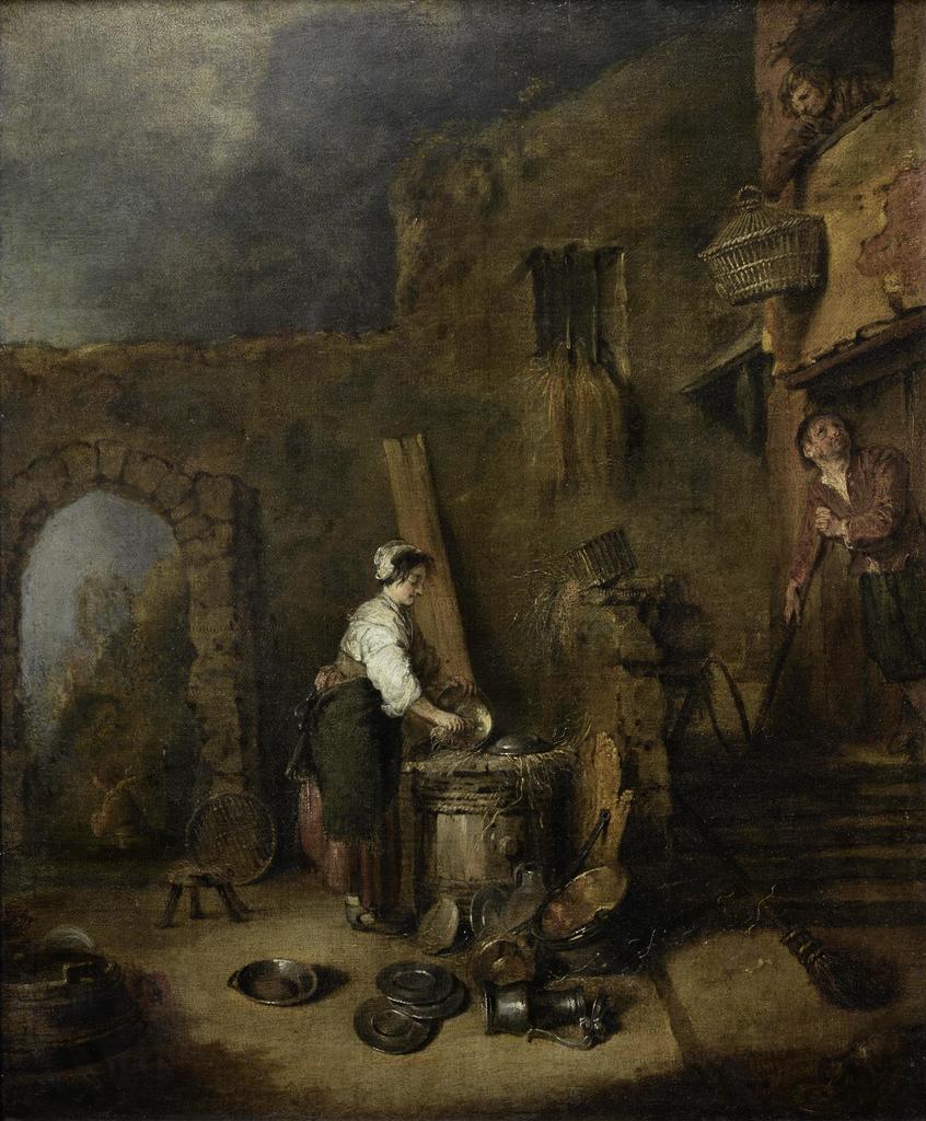 Antoine Watteau, L’Écureuse de cuivres, 1709-10. Huile sur toile, 53 x 44 cm. Strasbourg, musée des Beaux-Arts. Photo Musées de Strasbourg – M. Bertola