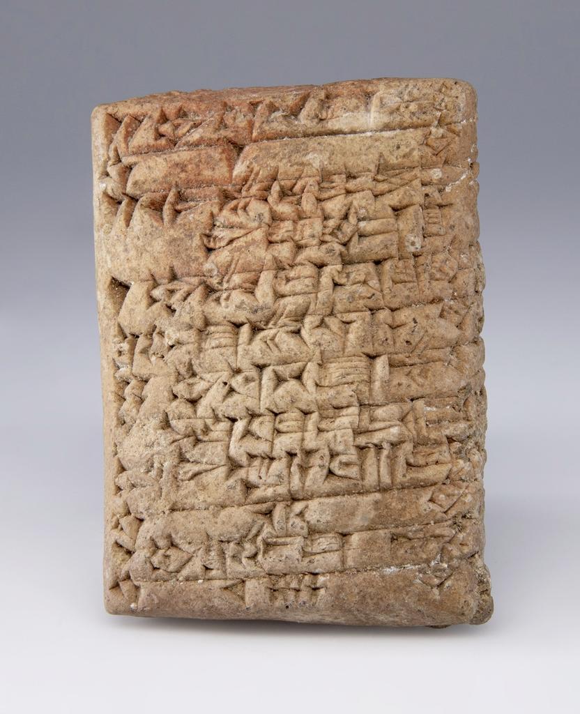 Tablette, Drehem, Irak (ancienne Puzriš- Dagan, Mésopotamie), époque d’Ur III, année 3 ou 4 du règne de Shu-Sin (2037-2029 avant J.-C.). Argile. Photo service de presse © Musées d’Angers, D. Riou