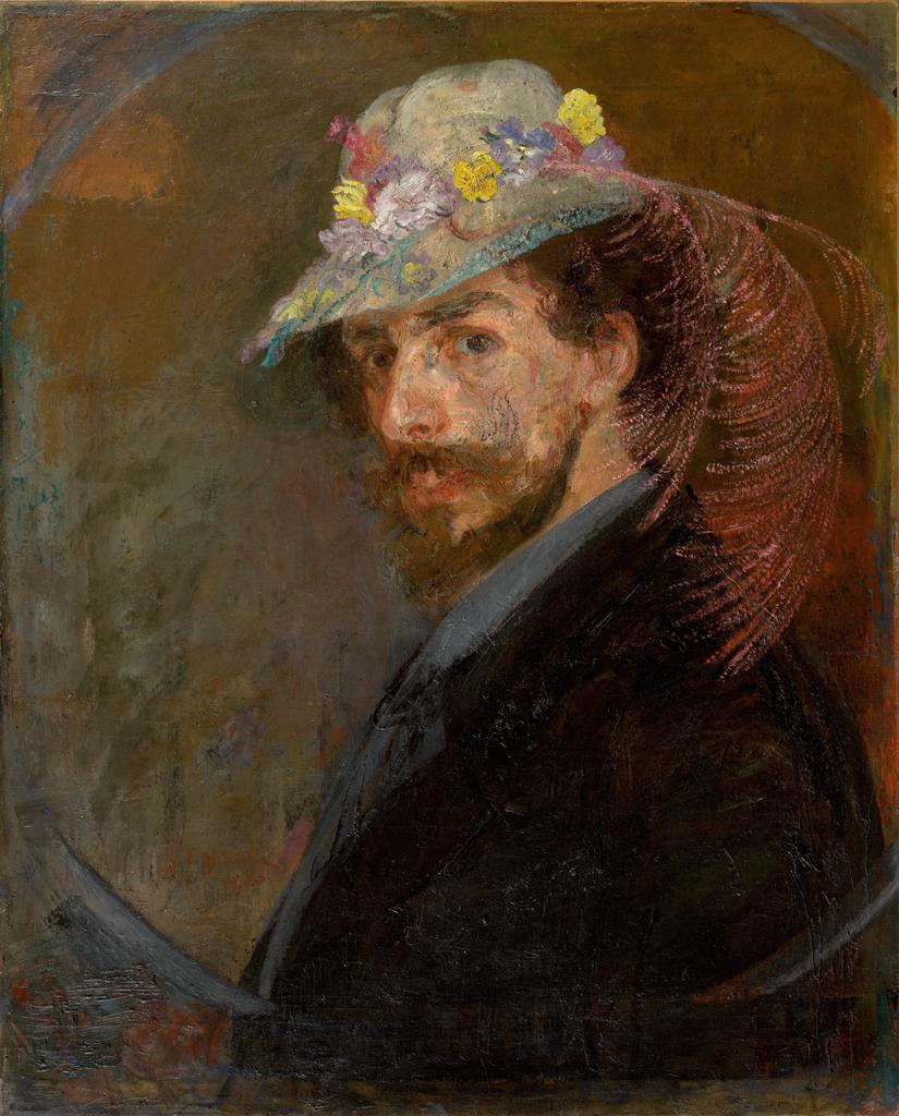 James Ensor, Autoportrait avec chapeau fleuri. Huile sur toile. Ostende, Mu.ZEE. Photo service de presse. © Public Domain / Photo Adri Verburg