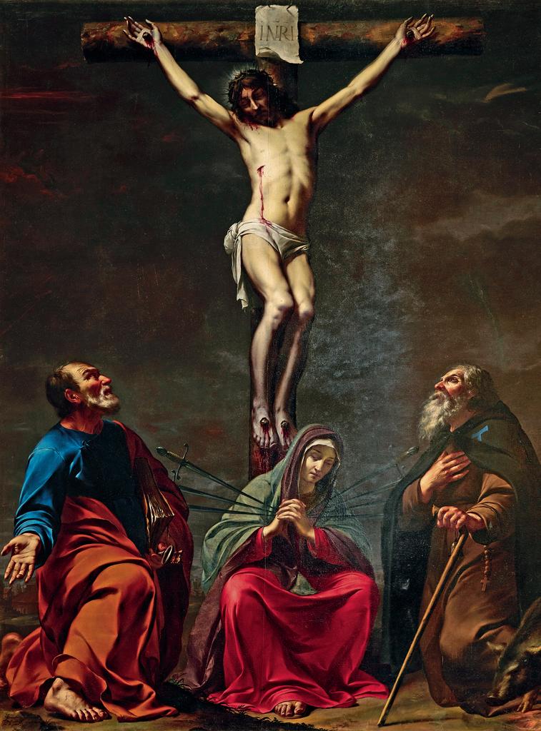 Ses premières œuvres aixoises illustrent la persistance chez lui d’un caravagisme, à la fois diurne et nocturne, que l’on suppose d’origine italienne, sinon romaine. Mais dans quelle mesure est-il aussi tributaire du caravagisme nordique dont l’essor, dans les « Pays-Bas », apparaît tangible dès les années 1610 ? C’est une question à laquelle on aimerait répondre. L’utilisation des ressources dramatiques du clair-obscur, le recours à de robustes types humains « plébéiens » pour les figures de saint Pierre et saint Antoine abbé frappent, d’emblée, dans son impressionnante Crucifixion avec la Vierge des Sept douleurs, entourée de saint Pierre et de saint Antoine abbé (1640), restaurée tout exprès, l’une des premières commandes majeures passées à notre peintre2.