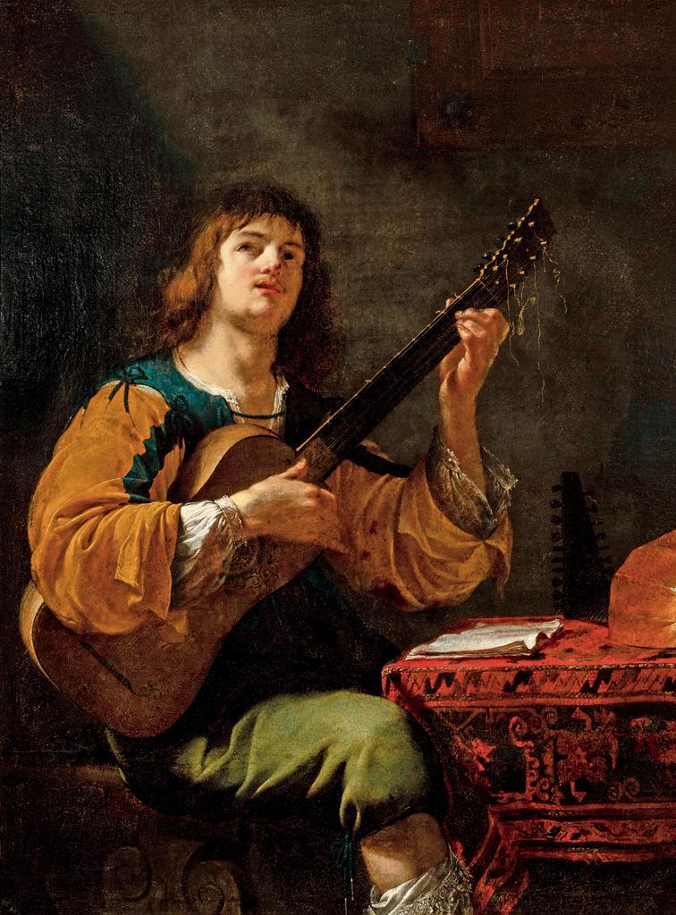 Jean Daret, Joueur de guitare (détail), 1636. Huile sur toile, 128,2 x 101 cm. Aix-en-Provence, musée Granet. Photo service de presse. © Photo C. Almodovar / musée Granet, Ville d’Aix-en-Provence