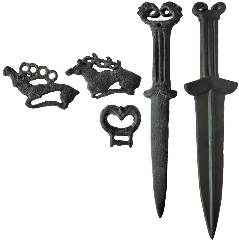 Poignards et appliques en forme de cerfs en bronze