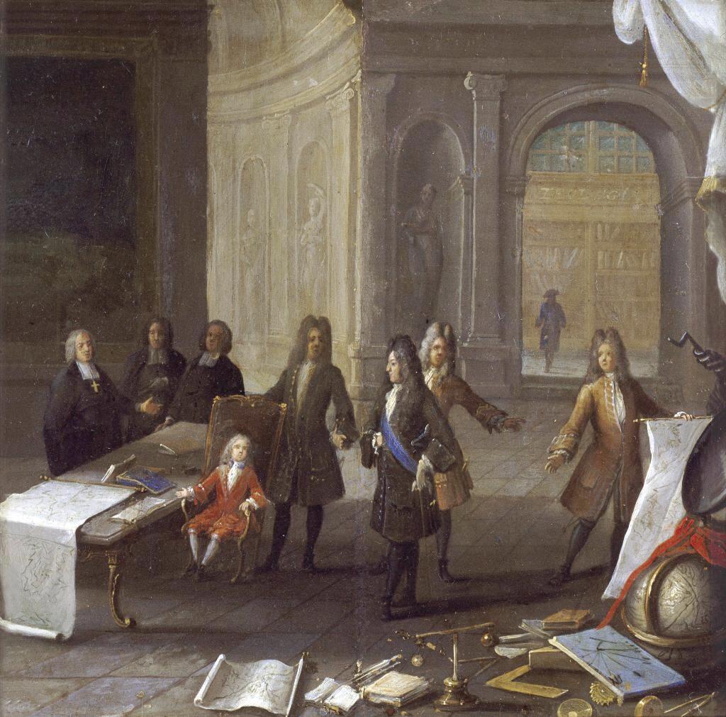 Louis XV enfant recevant une leçon de sciences en présence du cardinal de Fleury et du régent, vers 1720. Huile sur cuivre, 23,5 x 23,5 cm. Paris, musée Carnavalet – Histoire de Paris. © CC0 Paris Musées / Musée Carnavalet – Histoire de Paris