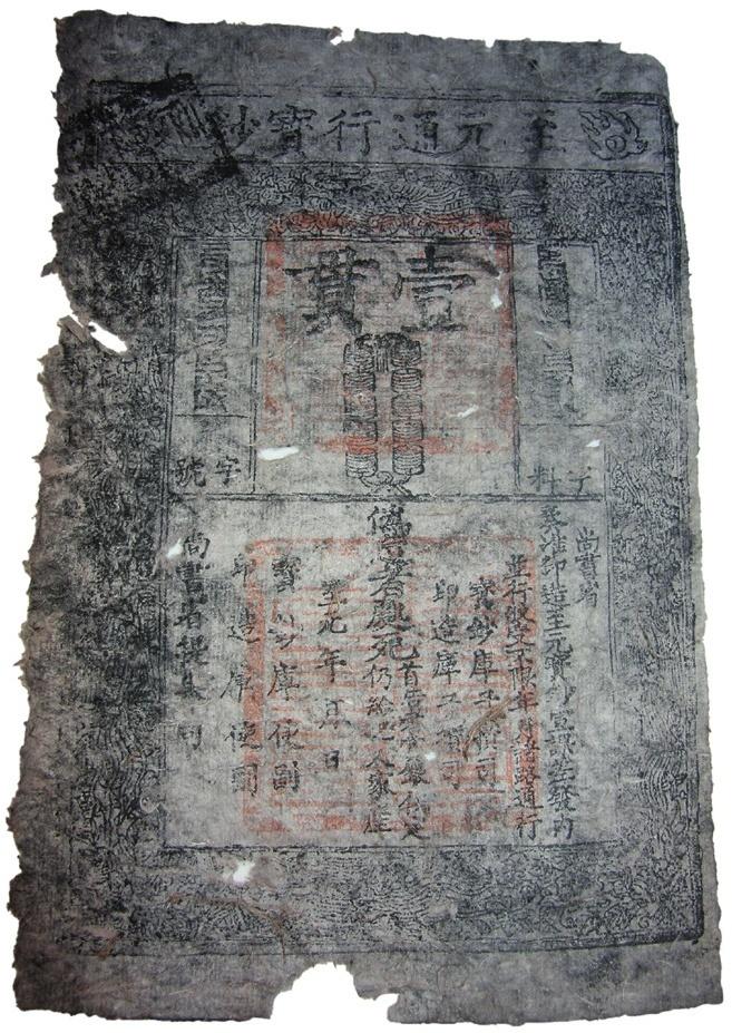 Billet de banque. Papier de soie, dynastie Yuan. XIIIe siècle. Mongolie, Ulaanbaatar, musée national de Mongolie. © Ulaanbaatar, musée national de Mongolie