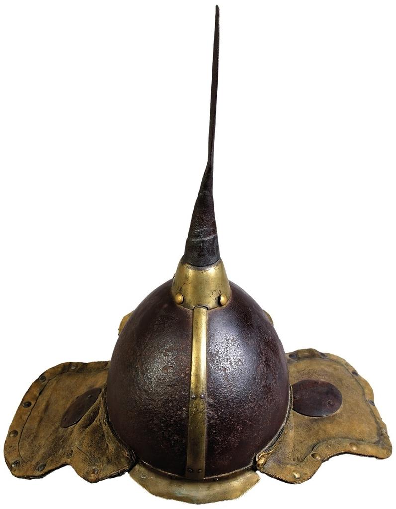 Casque avec oreillettes. Fer forgé et cuir, dynastie Yuan, XIIIe -XIVe siècles. Mongolie, collection Erdenechuluun Purevjav & Nemekhbayar Nadpurev. © Mongolie, collection Erdenechuluun Purevjav & Nemekhbayar Nadpurev
